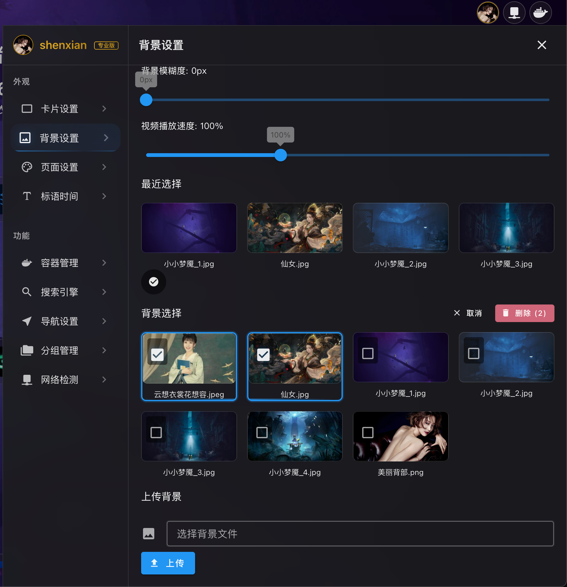 - 批量删除:选择多个背景后,可进行批量删除操作