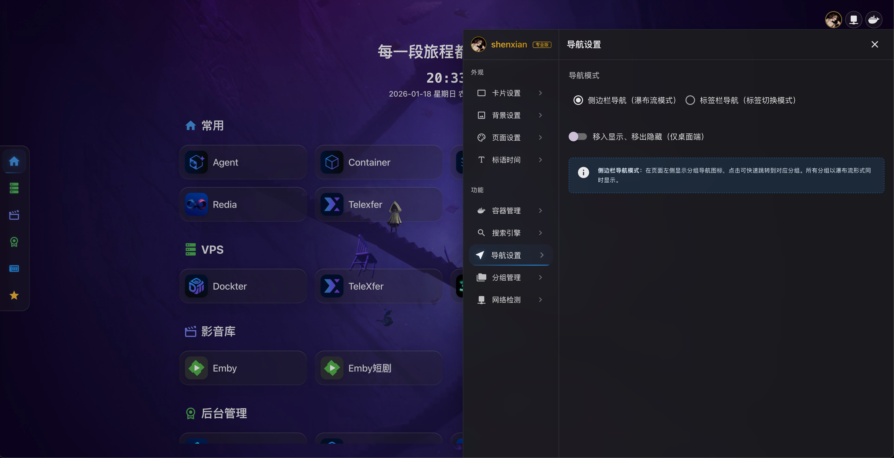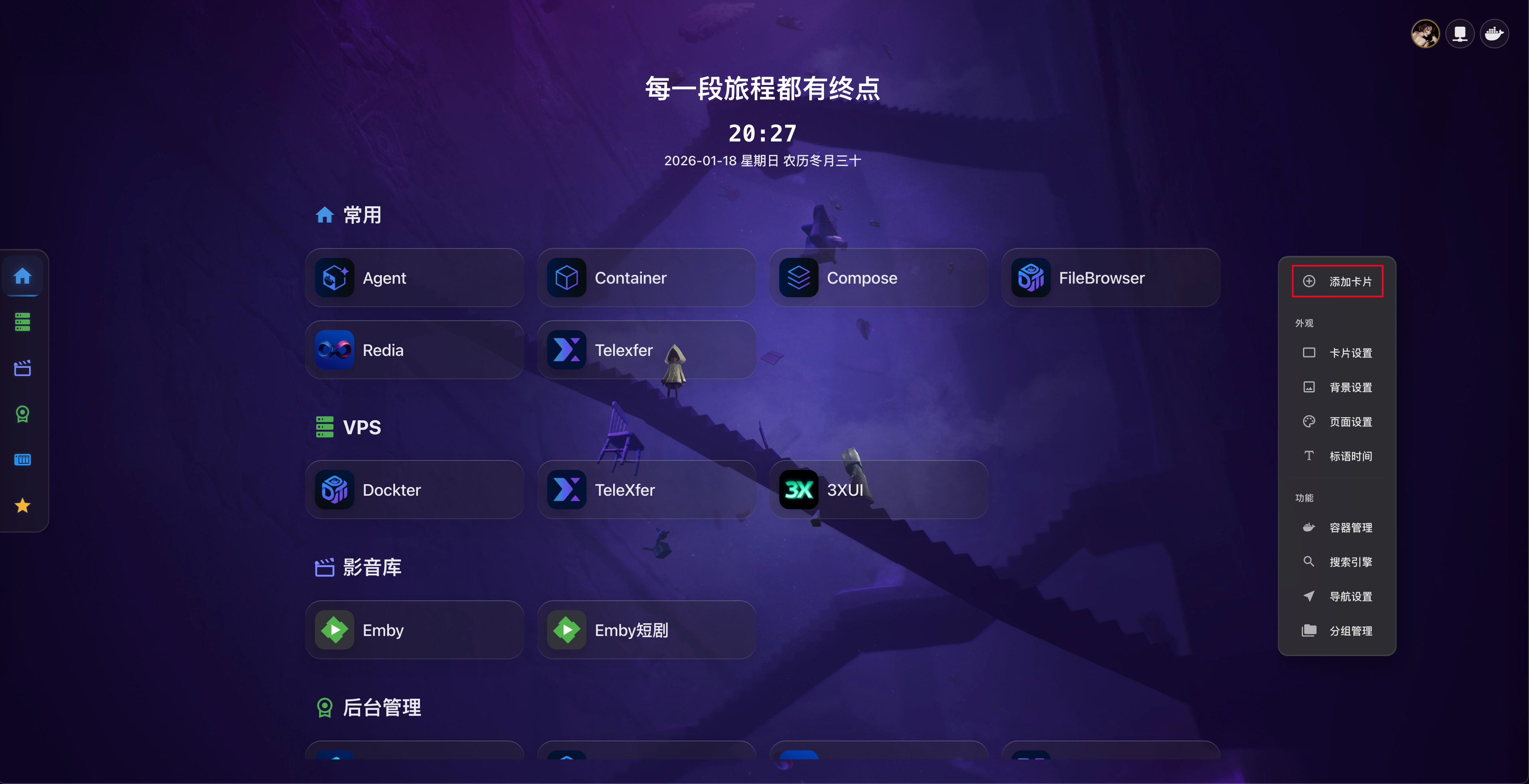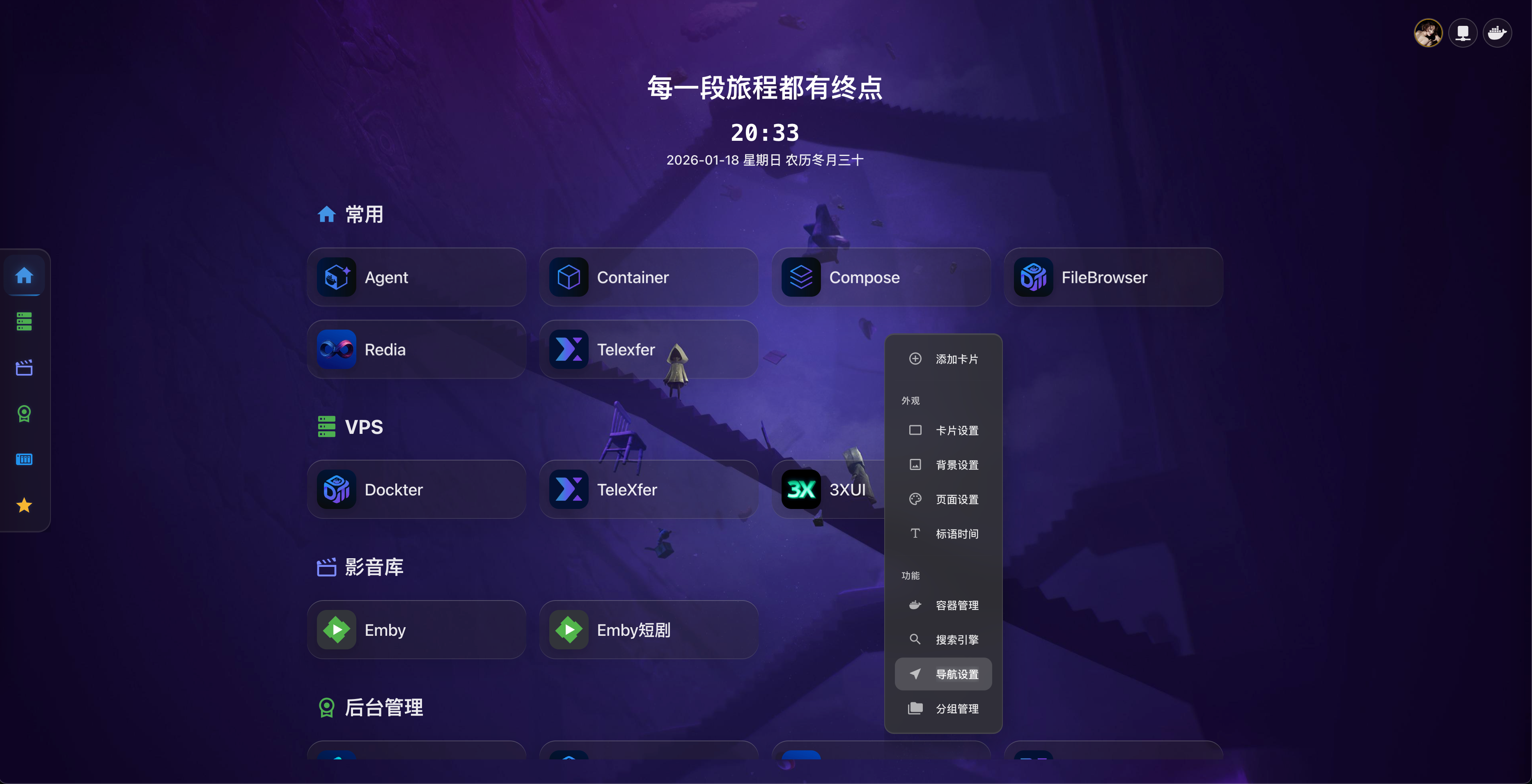 Dashboard 支持自定义背景图片或视频,让您的主页更加个性化。
