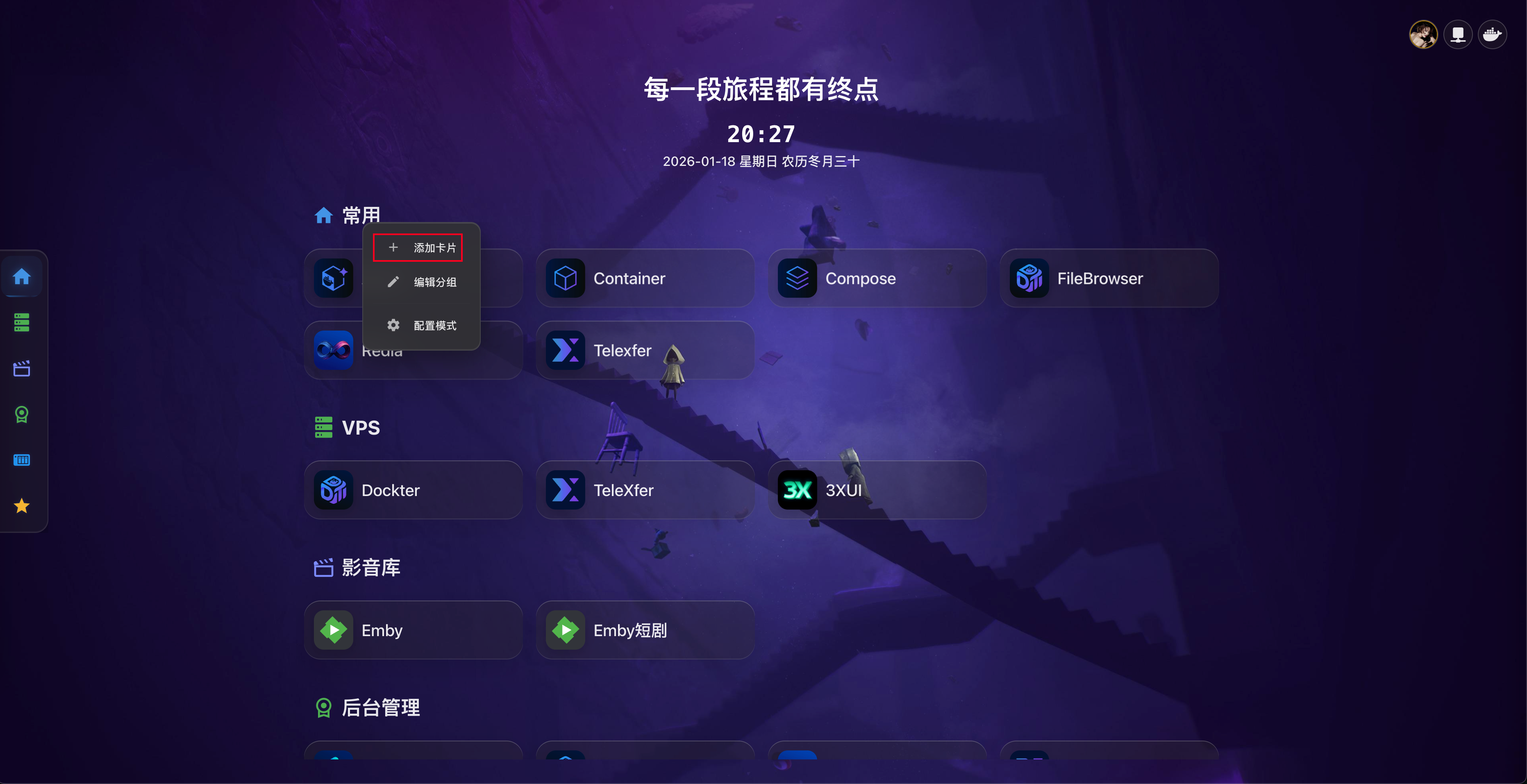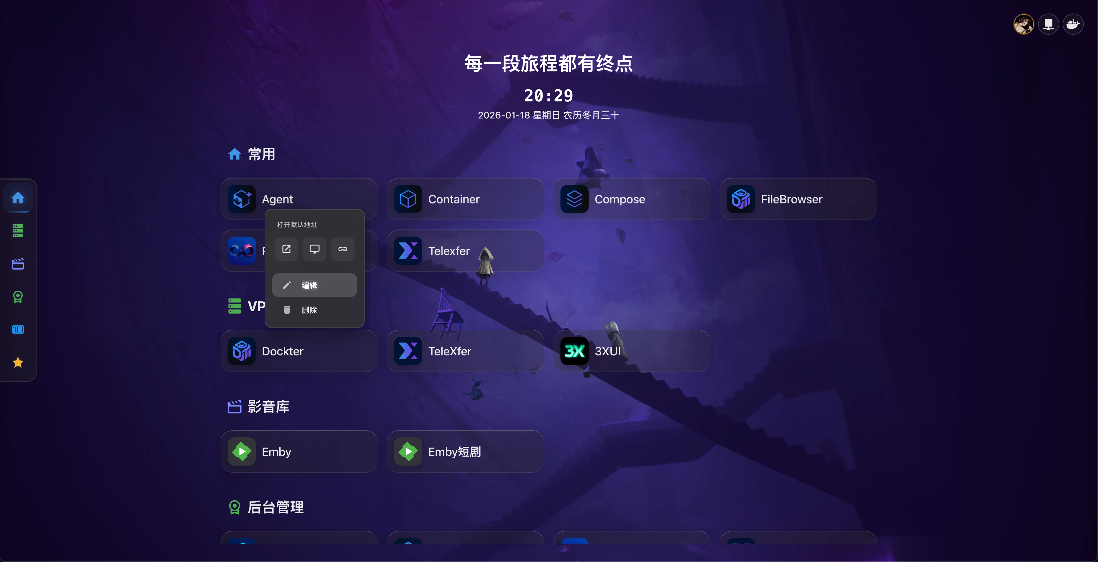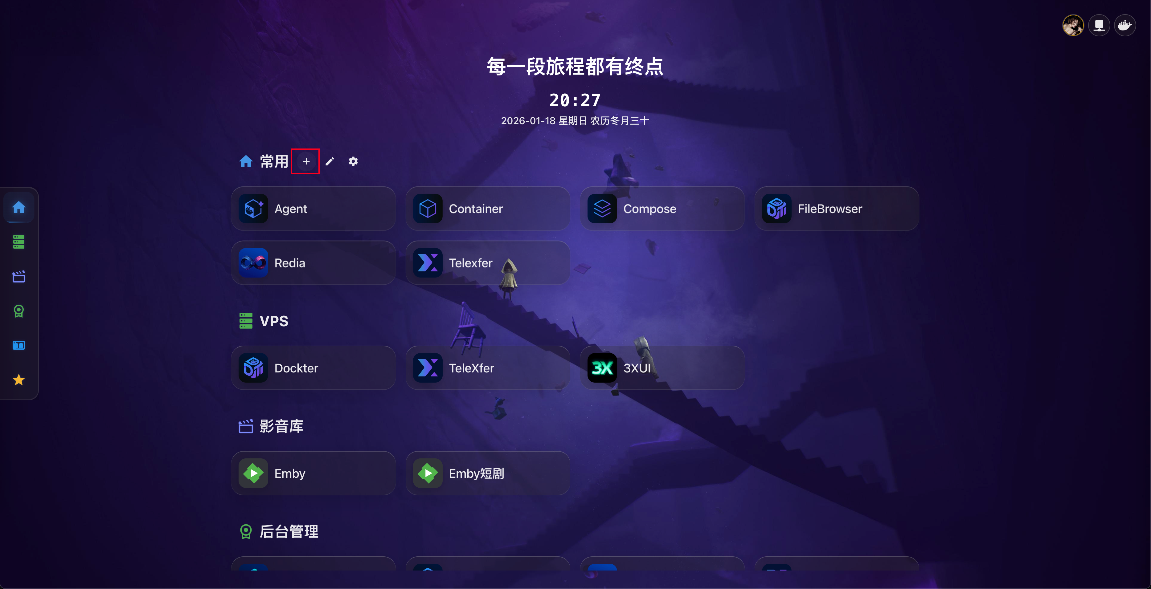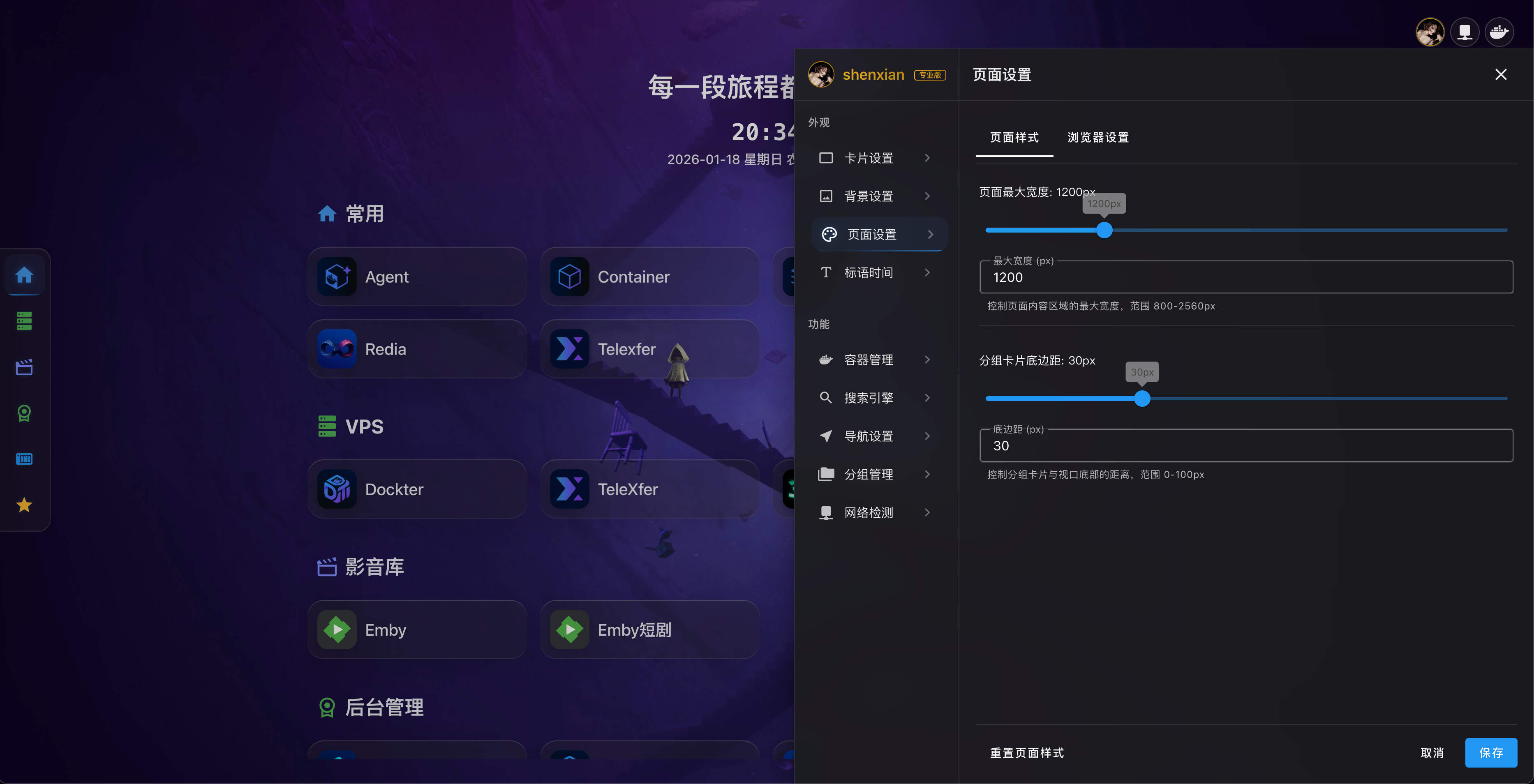 Dashboard 支持自定义背景图片或视频,让您的主页更加个性化。