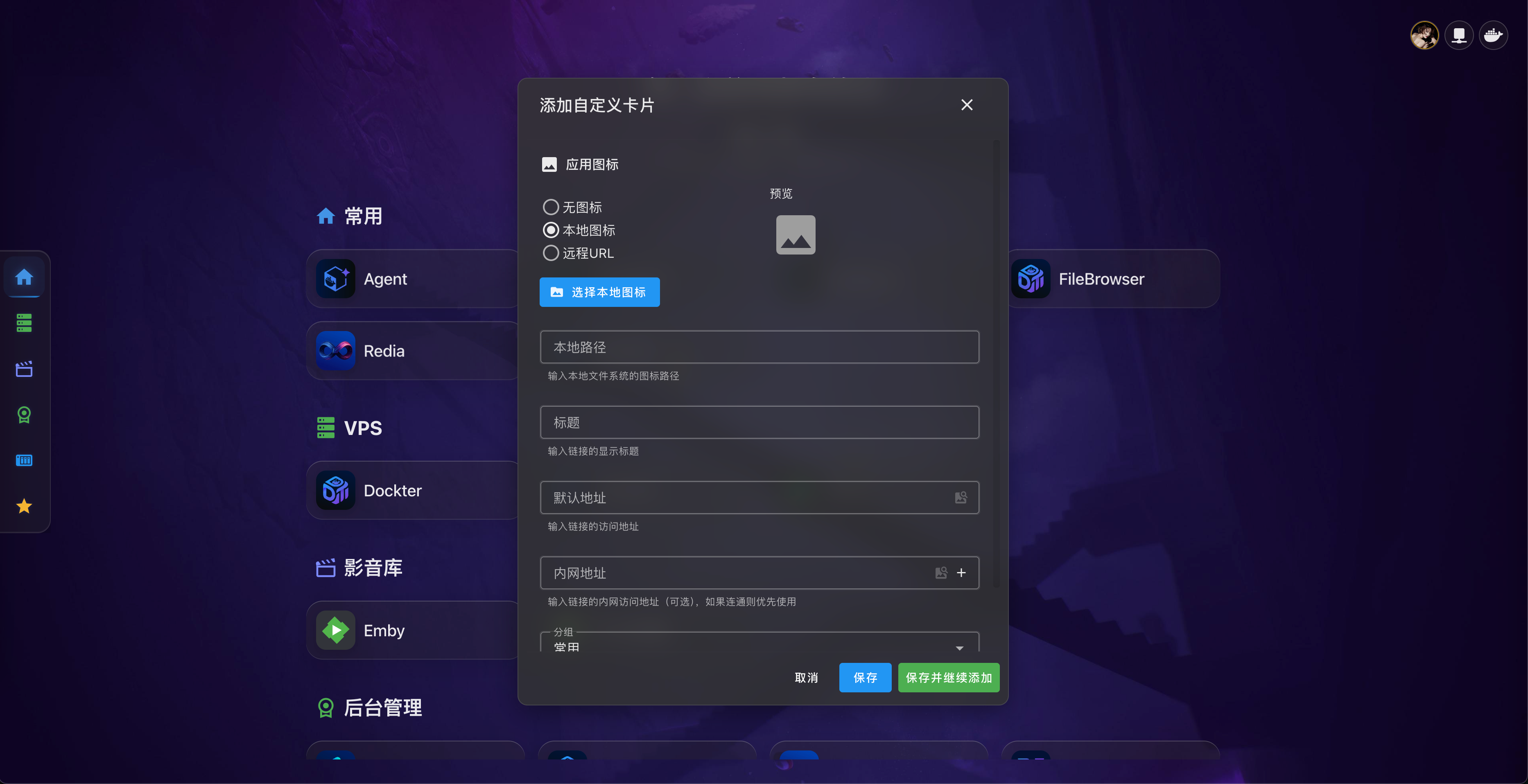 - 点击编辑按钮可进行更详细的配置,包括标题、访问地址、图标等