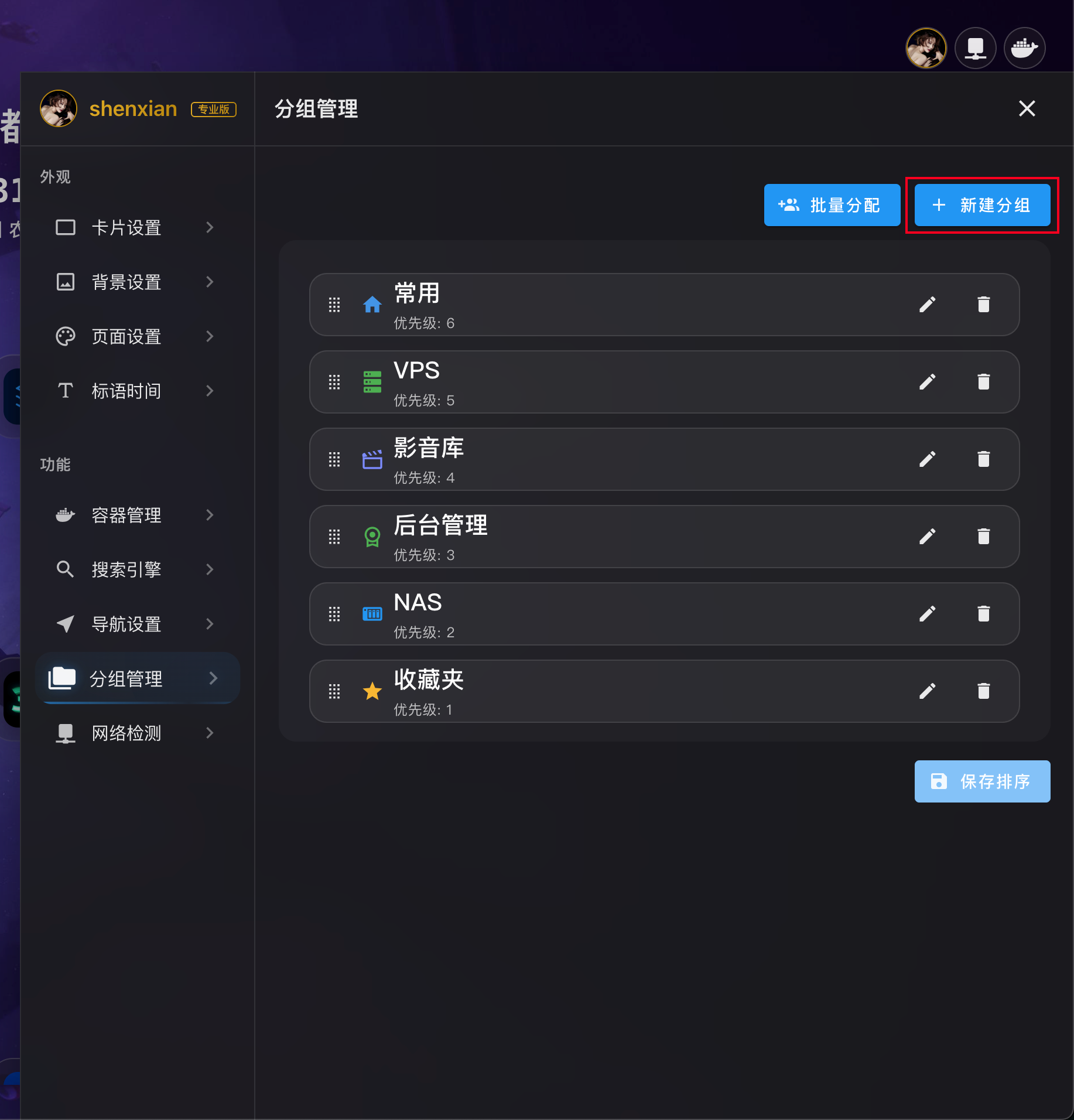 - 排序会自动保存,无需手动确认