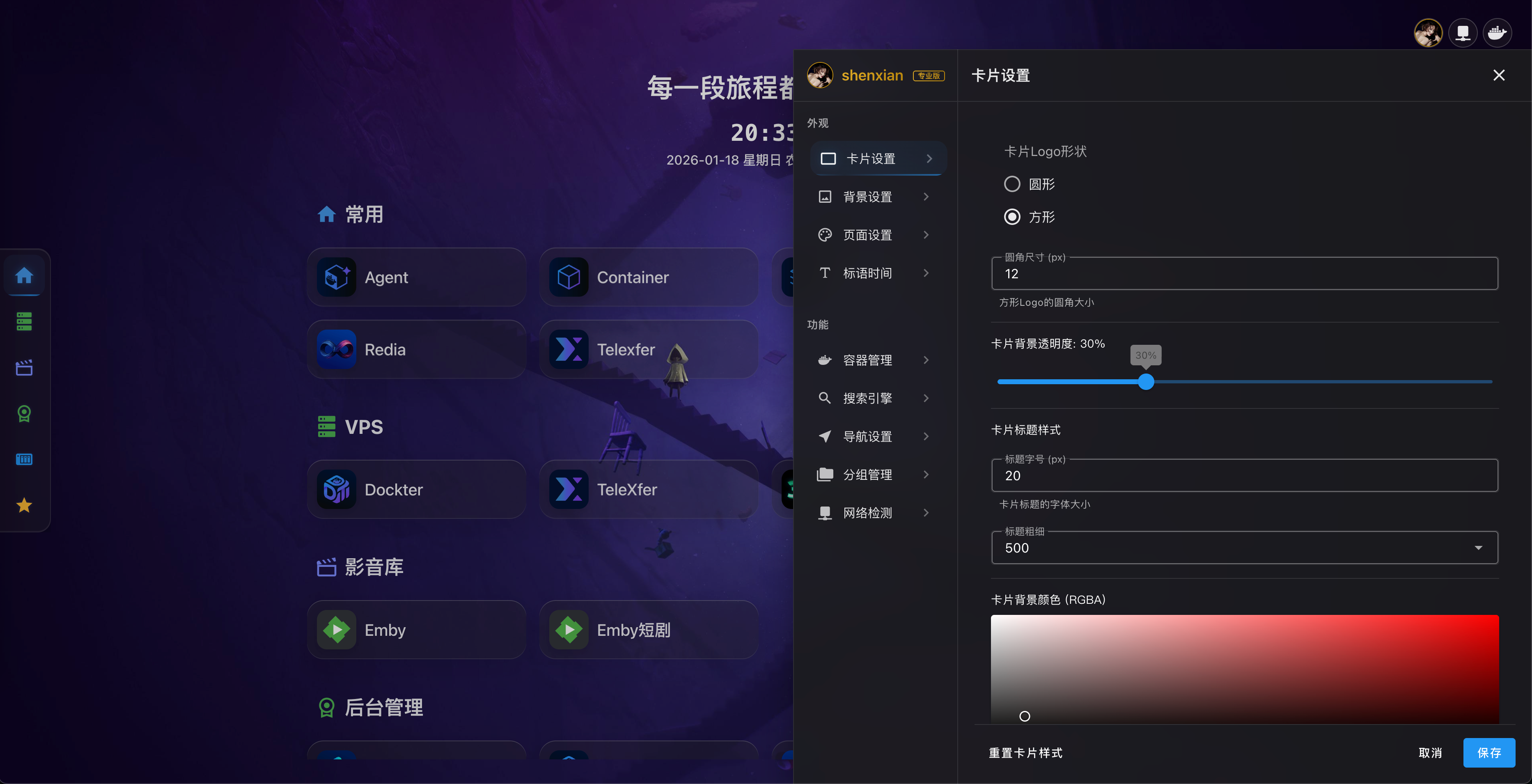 - 卡片背景颜色:通过颜色选择器调整卡片的背景透明度和颜色