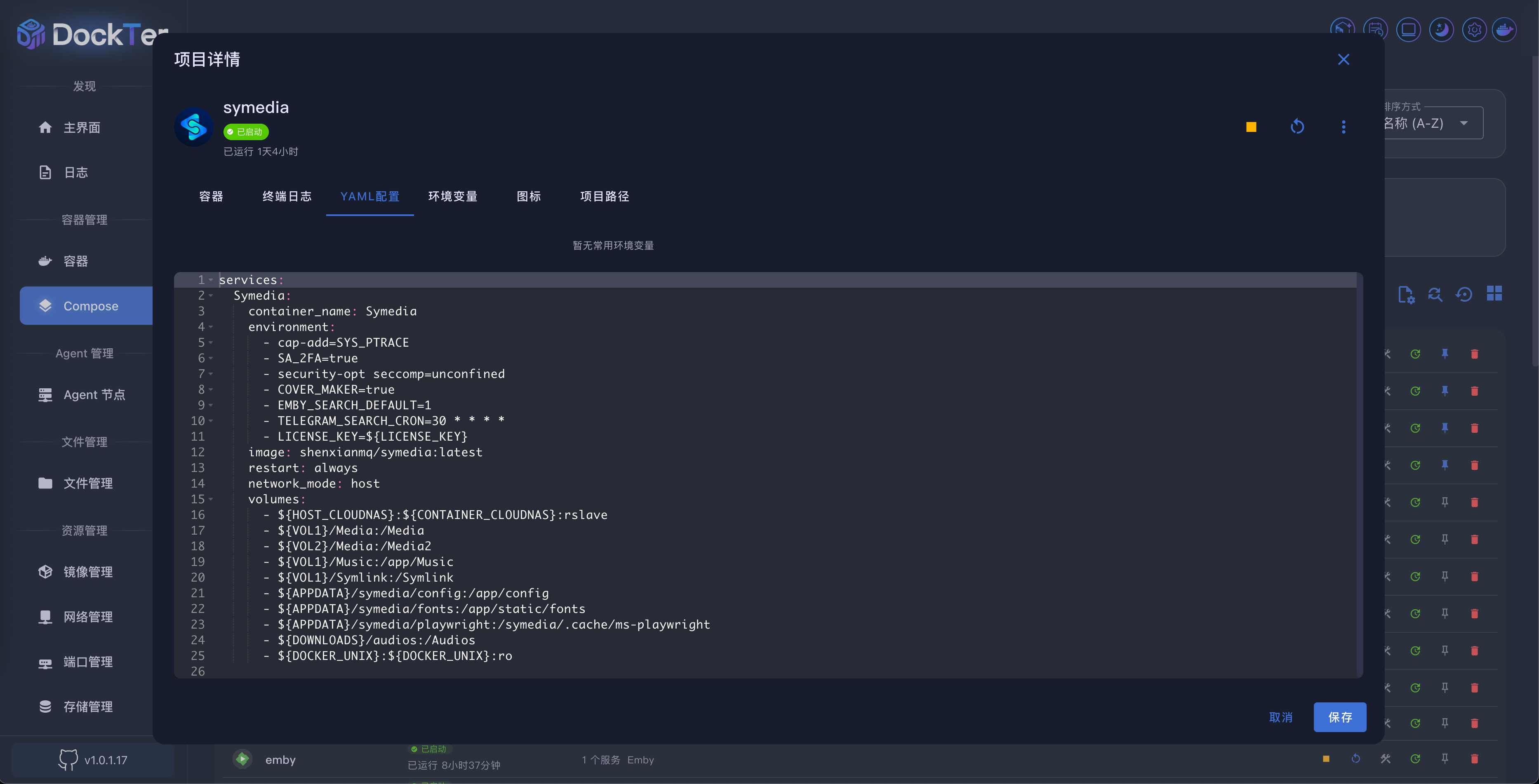 - 编辑 Compose YAML 内容