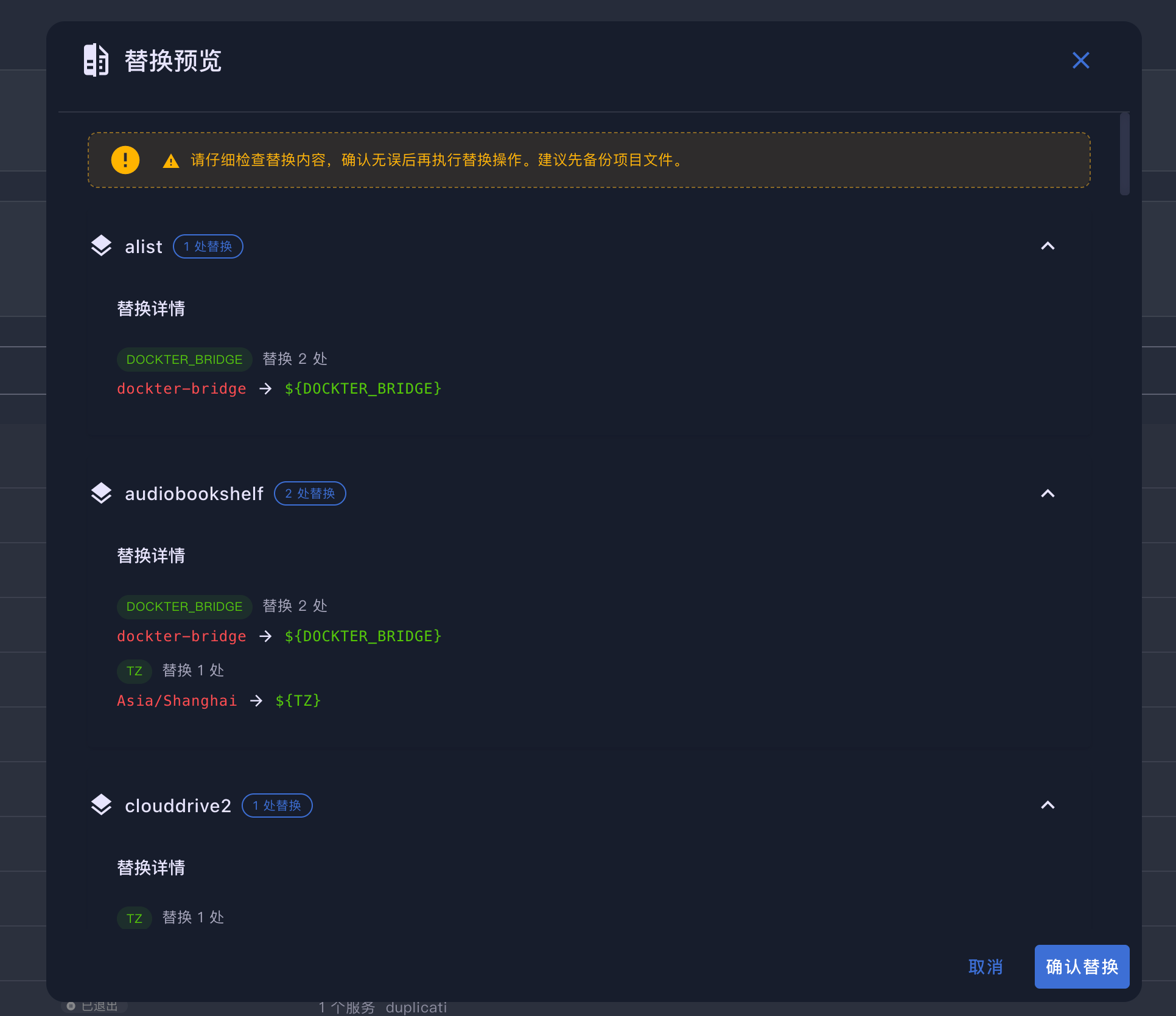 可以一键备份所有 Compose 项目。